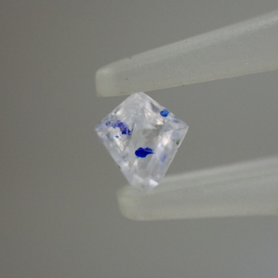 このお石さん、けっこうフラクチャーや黒っぽいインクルが入った子も多いのですが、この子の黒インクルはかなり少なく、ブルーのドットを堪能出来ます。