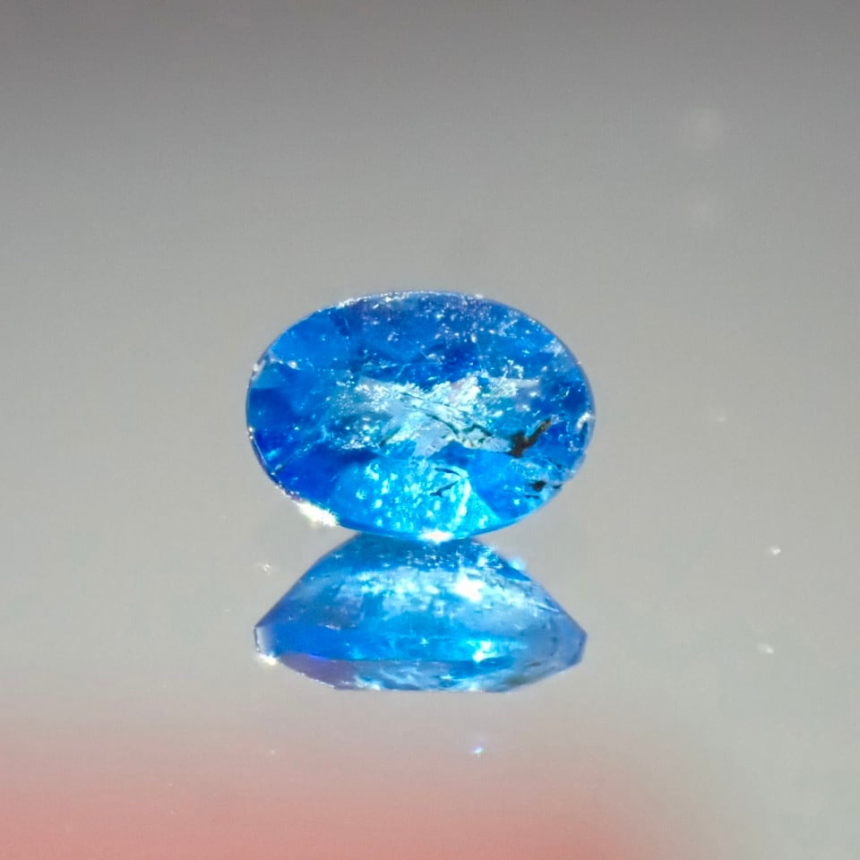 ブラジル出身のこのブルーを持つ天藍石は多色性が肉眼では見えません。二色鏡を通しても見えないレベルなので、多色性は期待出来ないのですが、何しろこの美し過ぎる青を見てしまったら、色なんか変わらなくていいから、ずっとその青でいて下さい!って思っちゃいます♫