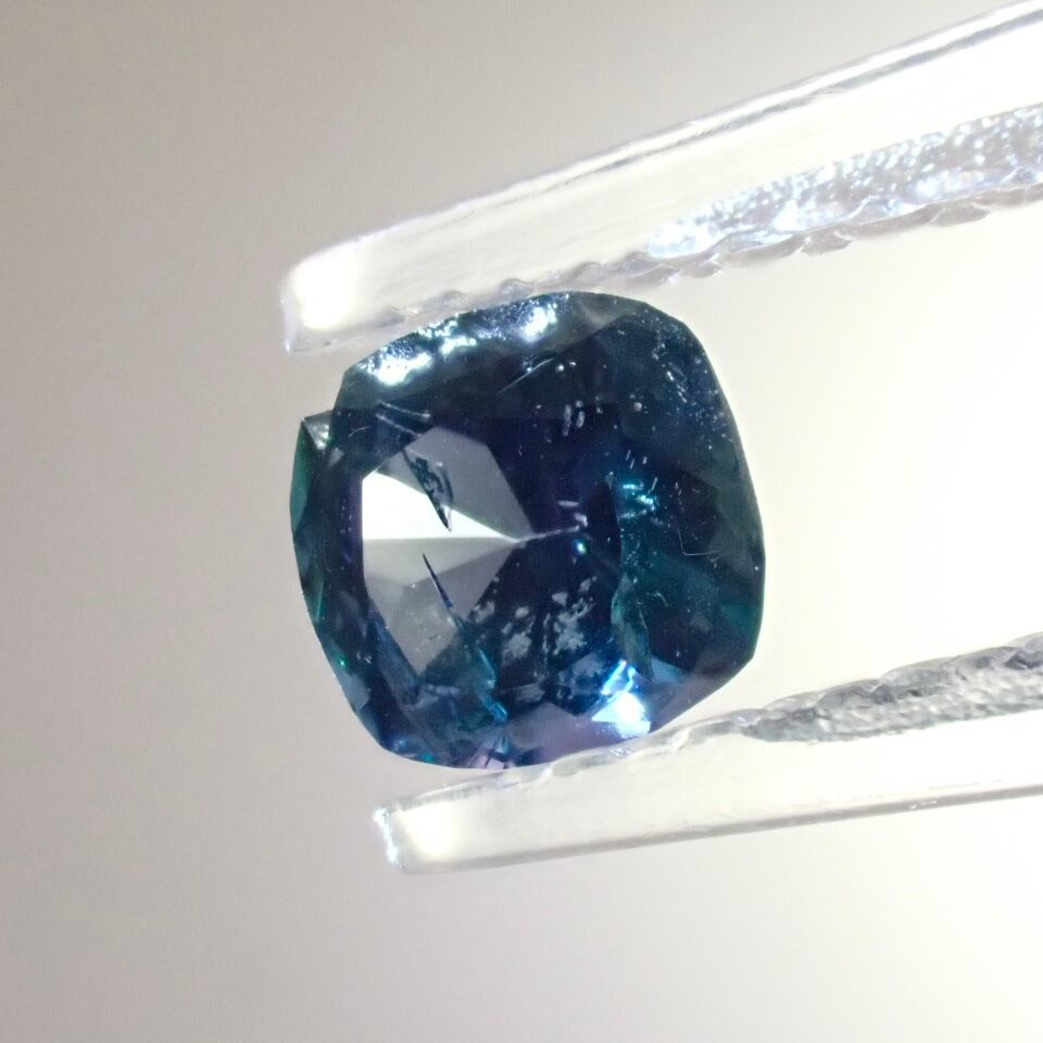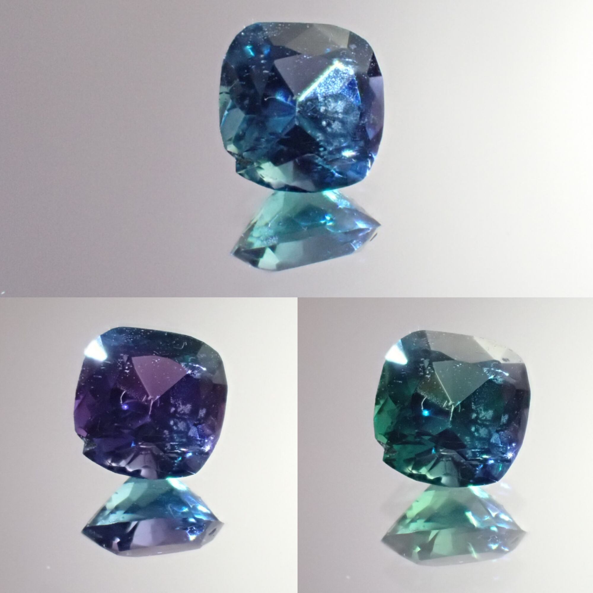 コーネルピンて多色性のあるお石さんなので、見る角度によって全然お色が違うじゃないですか。どのお色を正面に持って来るかはカッターさんの趣味とか、原石の形によるんだと思うんです。