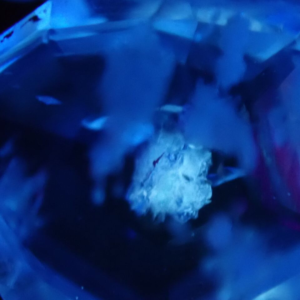 インクルには蛍光する子としない子がいて、この子は蛍光インクルを蛍光しない子達が、月にかかる雲のように取り巻いています。