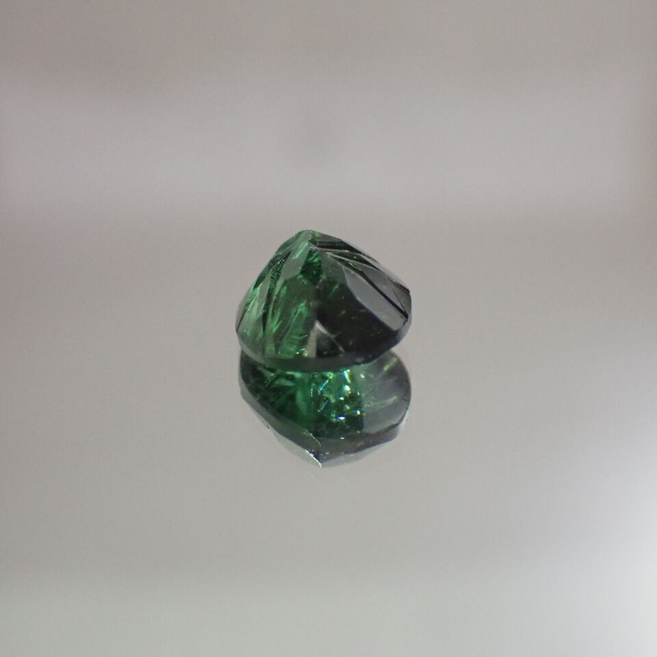 そうやってくるくると色んな角度で見てますと、このお石さんがバイカラーとはいかないまでも、グラデーションになっていて右端と左端では少しお色が違う事とか、フラクチャーはあるけど、透明度は高いよね、とか、見るたびに発見があるのでございます(*´∇`*)